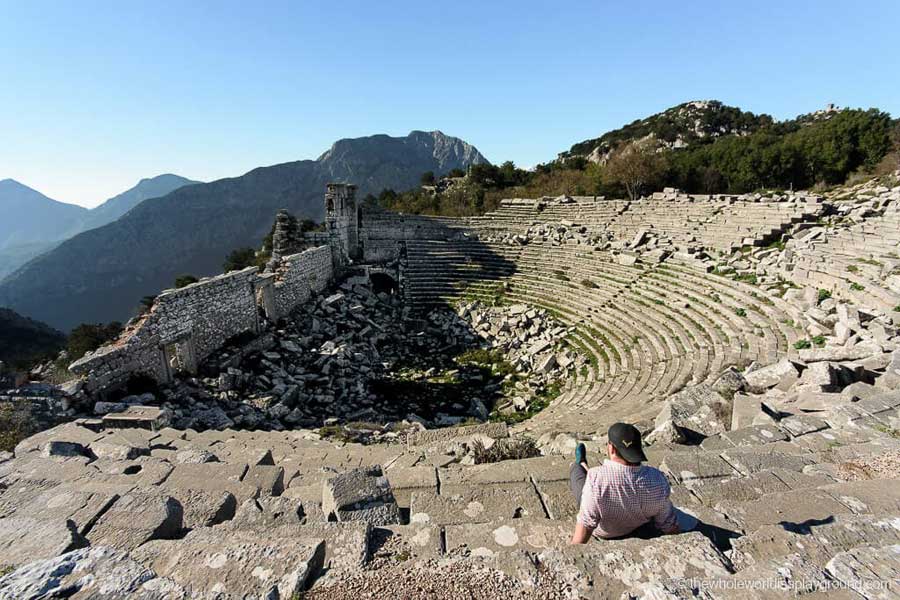 We visit this old lycian city, which was created by colonists coming from Xanthos which was then over-populated. Between 2 steep sides valleys the acropolis draws up, On the northern face, a natural section of wall, you will see an extraordinary accumulation of rock-cut tombs. We walk in an imposing mountainous decoration, between the necropolis, the Greek theatre, the Roman bath, the agora, the public place and the church.